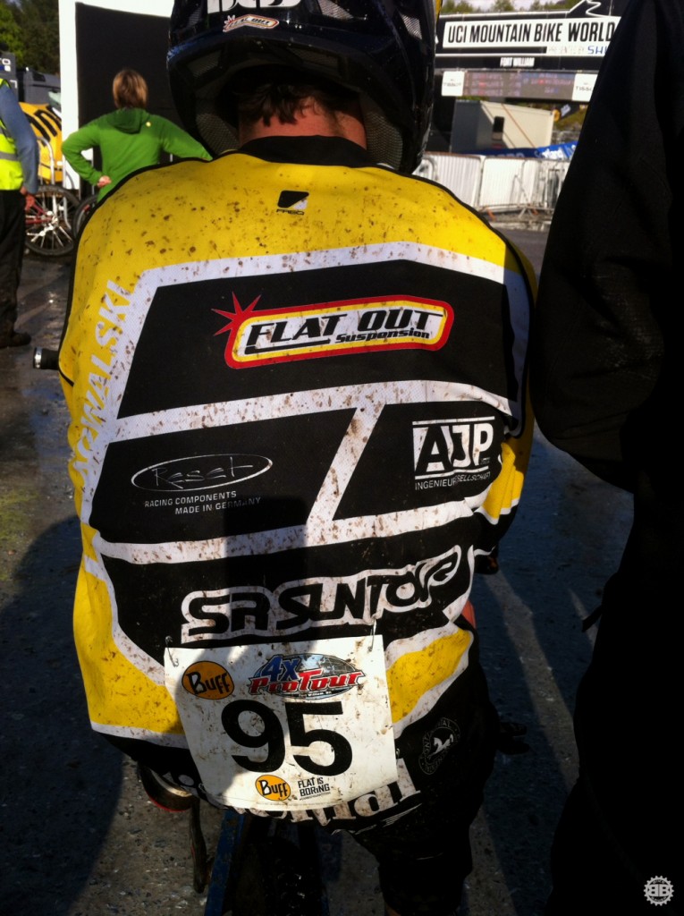 Zur gleichen Zeit fand die 4X Pro Tour statt. Unser Daniel Kowalski war mit am Start und legte sich mit der Elite in der Szene an. Er hat sich wacker geschlagen und konnte mal Luft auf einer der härtesten 4X Strecken schnuppern.
