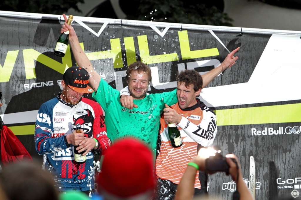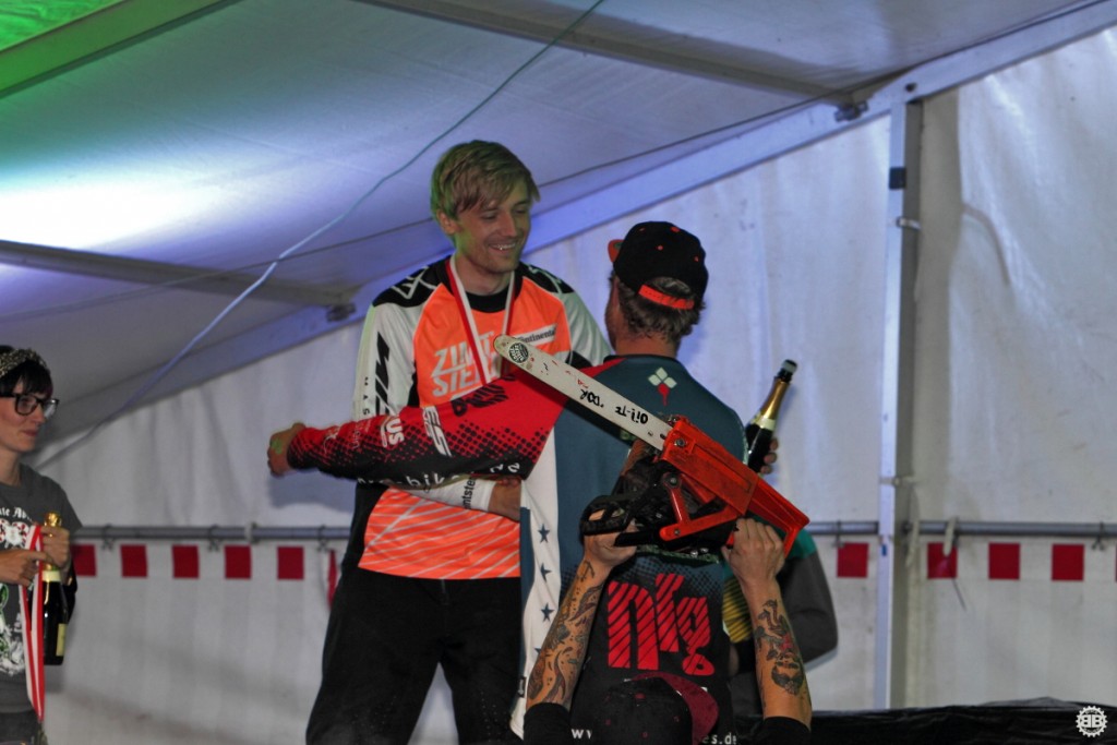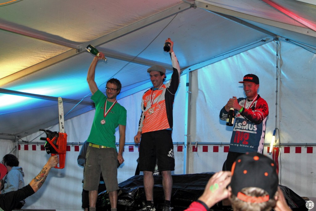 Die Freude mischte sich dann mit einer gehörigen Überraschung: Die Strecke wurde im Gegensatz zu den Vorjahren radikal geändert und wartete mit einer komplett neuen Streckenführung auf die Piloten und ihre Bikes. Die Vorfreude auf die neuen Herausforderungen waren Anreiz genug: Schnell rein in die Klamotten, rauf auf die Bikes und runter den Hügel.