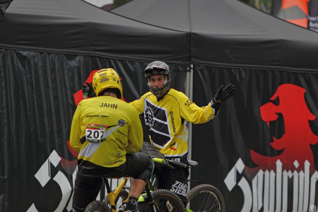 Noah hatte leider zum Wetter auch ein wenig Pech mit der Luft in seinem Hinterreifen und konnte seine Platzierung nicht verbessern. Zwar verhinderte der Regen die Titelverteidigung von Johannes Fischbach, jedoch handelt es sich bei Downhillfahren um eine Outdoorsportart – und das Wetter gehört einfach dazu. Manchem hilft es, dem anderen spielt es einen Streich. Dennoch: Fairplay und hiermit auch unser Glückwünsch an die frischgebackenen deutschen Meister.