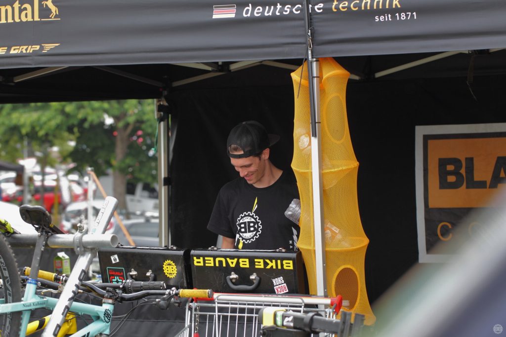Donnerstag nach der Arbeit ging es dann mit einem Praktikanten (Francois) aus Frankreich nach Tabarz und zu seinem ersten Downhillrennen. Er war voller Erwartungen und Freude das NBB-Team wieder zu sehen, er kannte alle schon von einem Trainings WE in Winterberg und dem GDC dort. Der Rest des Teams war natürlich auch auf den Straßen in Richtung Tabarz unterwegs. Im Fahrerlager angekommen wurden noch fix die Zelte aufgestellt, die Conti-, Reset- und NBB-Flaggen gehisst und ein bisschen Mist gelabert und dann ging es auch schon ab ins (Feld-)Bett.