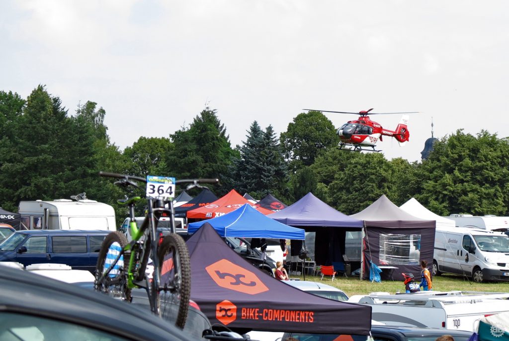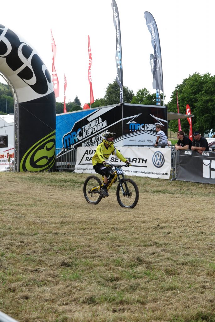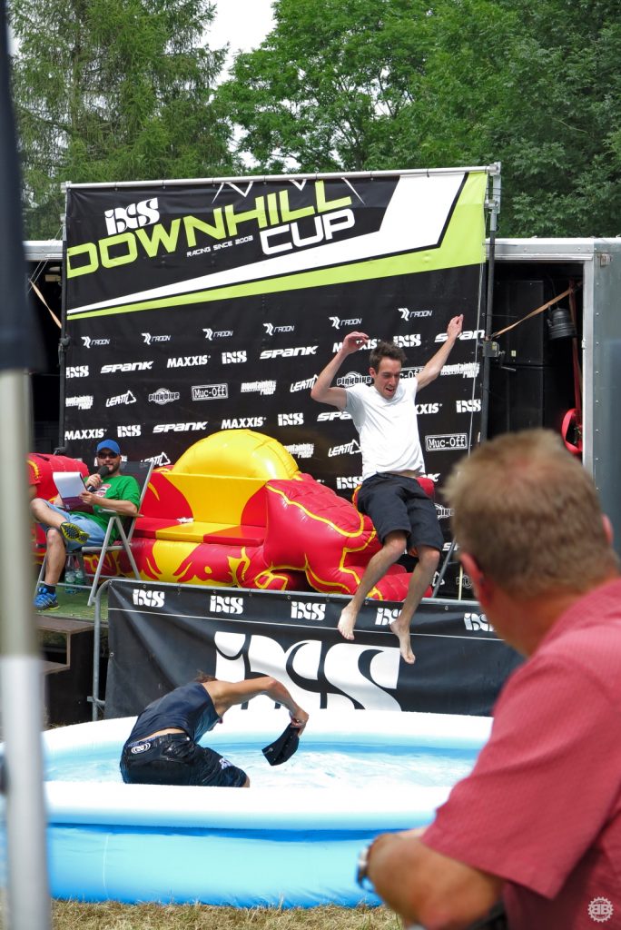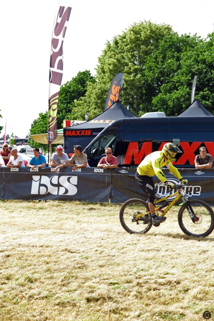 Das Training ist nach dem Mittag vorbei und es geht an die Seedingruns. Wir schnappen uns ein paar Conti-Stühle und die Kameraausrüstung und machen uns auf zum Zielsprung. Auf der dem Festplatz gegenüberliegenden Seite ist noch die ganze Wiese frei und wir machen uns breit. Die Platzierungen des Teams sind erstmal keine Überraschungen, übertreffen aber doch die Erwartungen. Leider ist die Moderation an diesem Tag etwas dröge und die gespielte Musik hätte besser zu einer Fahrt mit einem Aufzug gepasst, aber was nicht ist, konnte ja noch werden.