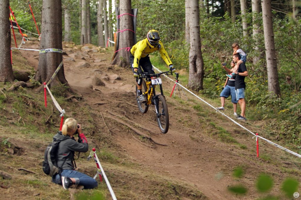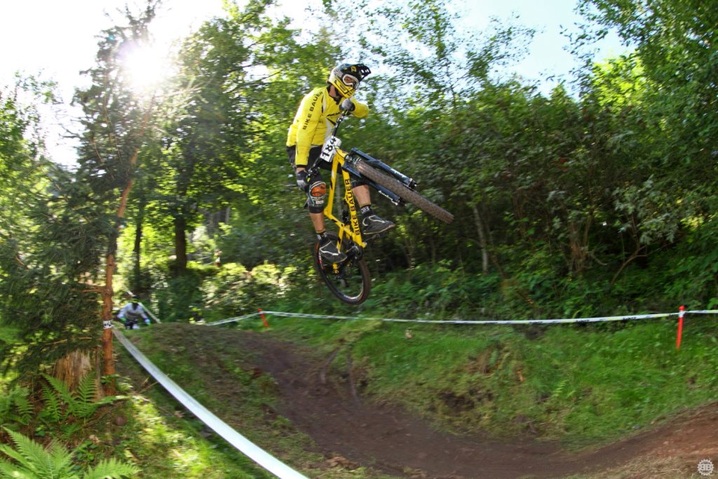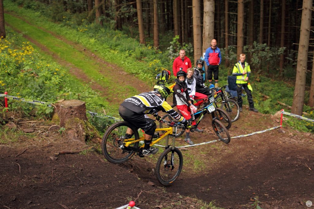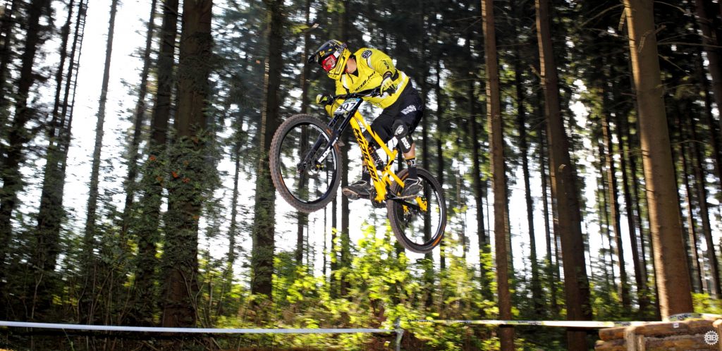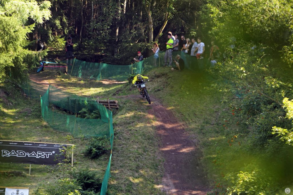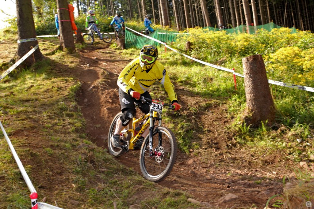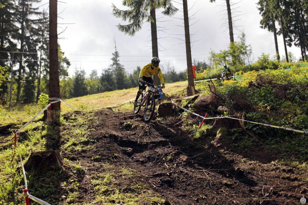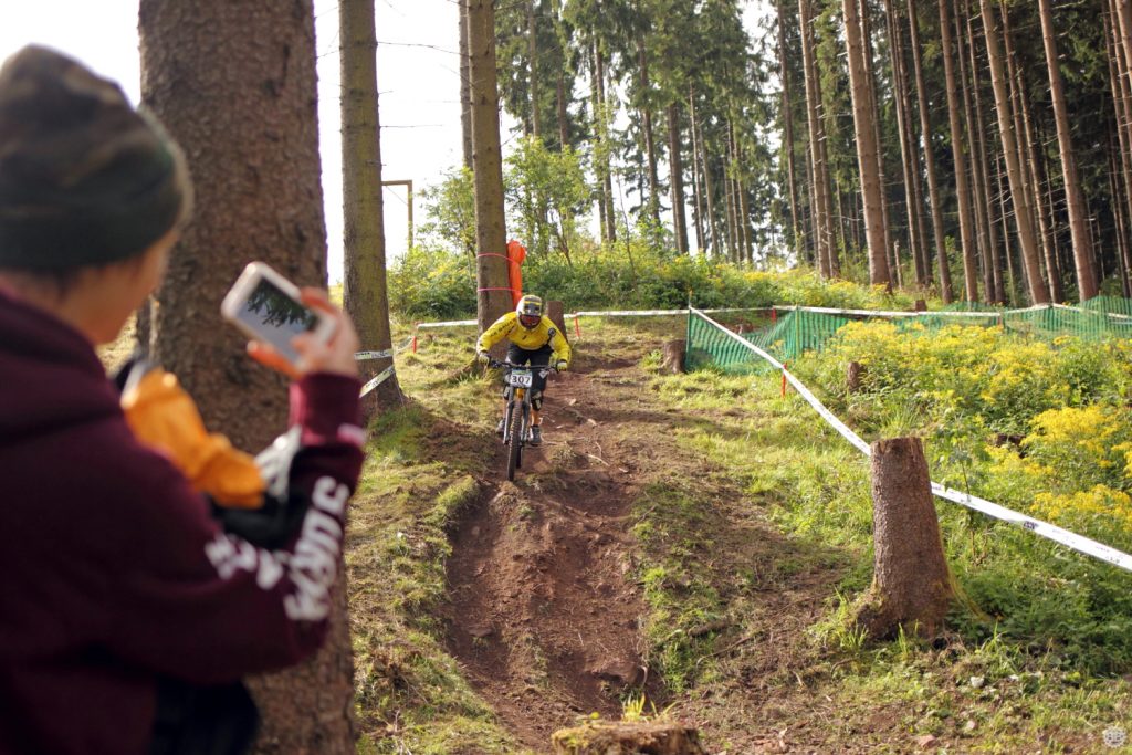 Kevin „Kiwi“ Dewinski kommt noch eine Sekunde früher mit seinem brandneuen Nicolai G19 den Berg runtergehämmert und sichert sich einen Platz im oberen Fünftel der Elite Men. Übrigens ist das Bike so brandneu, dass es noch raw ist, also quasi frisch aus der Rahmenlehre. Und bevor ihr euch die Finger nach G19 wund sucht, wartet ab, was das Mountainbike Rider Magazin dazu schreibt. Nur so viel: die sind da was am planen dran. Kiwi hat jedenfalls, seitdem er das Bike hat, nur noch ein fettes Grinsen im Gesicht. Noah Kuhnen platziert sich im saustarken Starterfeld der Elite Men dann noch sauber im Mittelfeld.