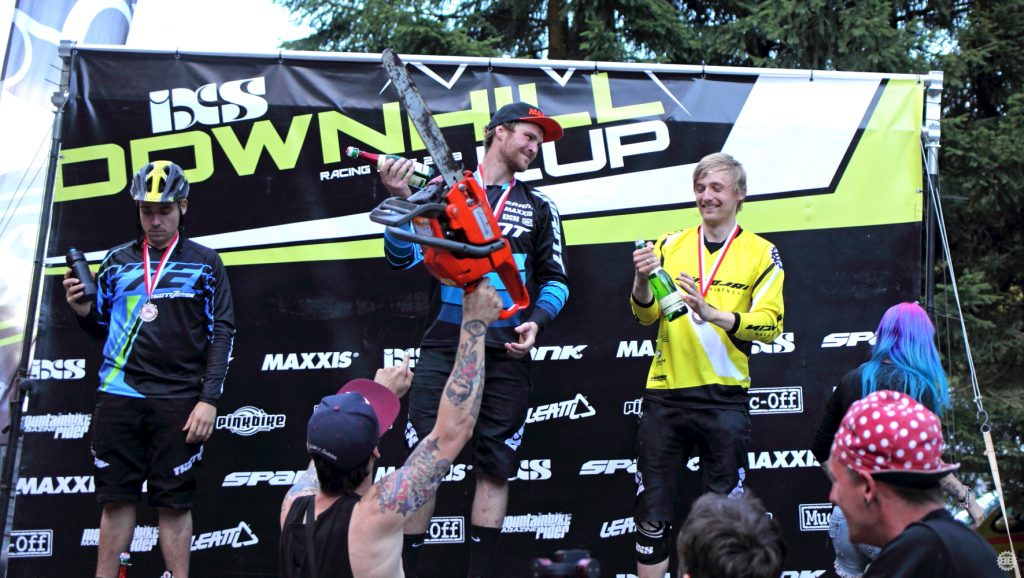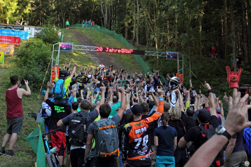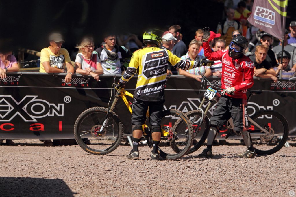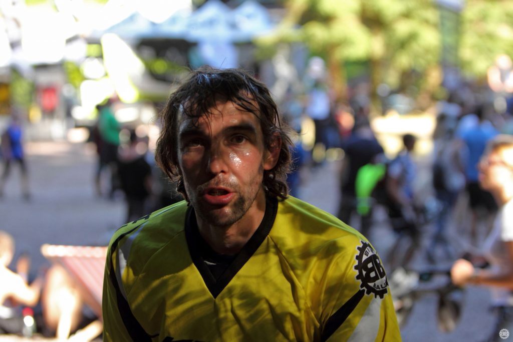 Sonntag. Finaltag. Die Absolute Abfahrt ist mittlerweile absolutes Geballer geworden und die Strecke entsprechend ausgebombt. Es ist jedes Mal faszinierend, wie sehr eine Strecke ihr Gesicht verändert, sobald das Rennen richtig losgeht. Ich starte als fünfter. Und rutsche kurz nach dem ersten Sprung weg. Ich denke, ich muss zu meiner Laune auf der restlichen Abfahrt nichts mehr sagen…aber: es bleibt das Absolute Wochenende, denn es ist einfach alles dabei. Höhenflüge, Abstürze, Wut- und Mutsprünge, Bodenproben und verbogene Bremshebel, gute Gespräche, laute Fans, warme Sonne und mal wieder Ergebnisse, auf die wir stolz sind: