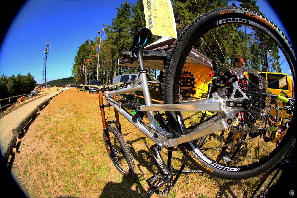 Als ich nun Freitagvormittag im Teamzelt ankam, zeigte mir Thomas voller Stolz das neue G19. Der rohe Rahmen mit der schwarzen Rux und den Teamparts macht optisch schon einiges her und gefiel mir sofort. Die Bude ist einfach lang, flach und tief – geil!